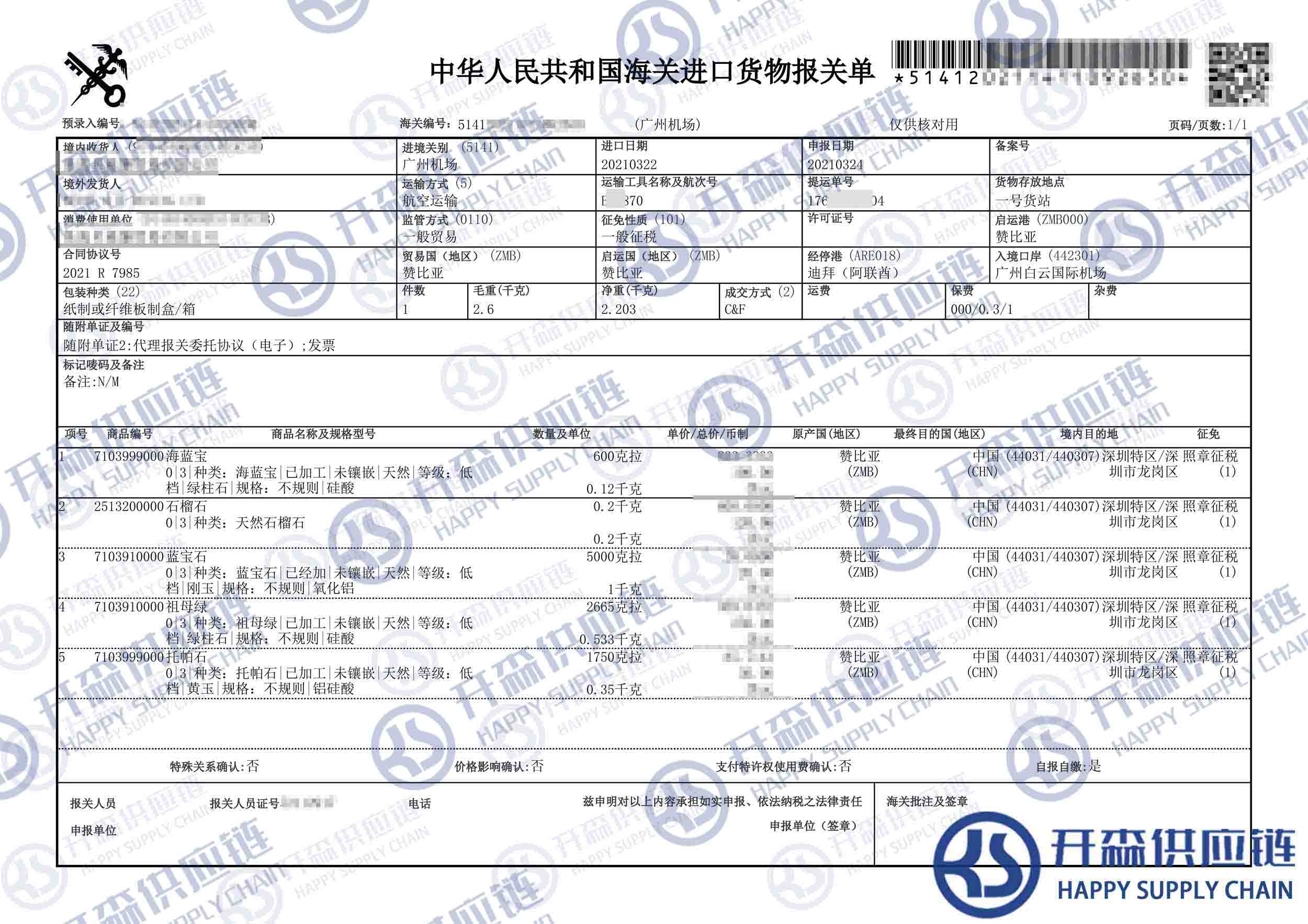 原文標題:贊比亞藍寶石進口報關代理案例【經典案例】