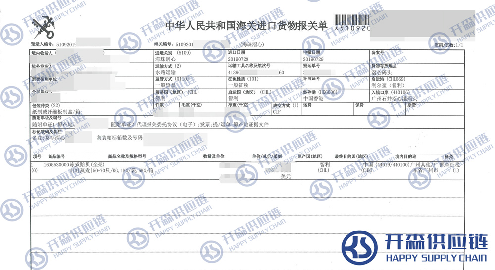 一、智利冷凍貽貝進(jìn)口報關(guān)代理案例詳情