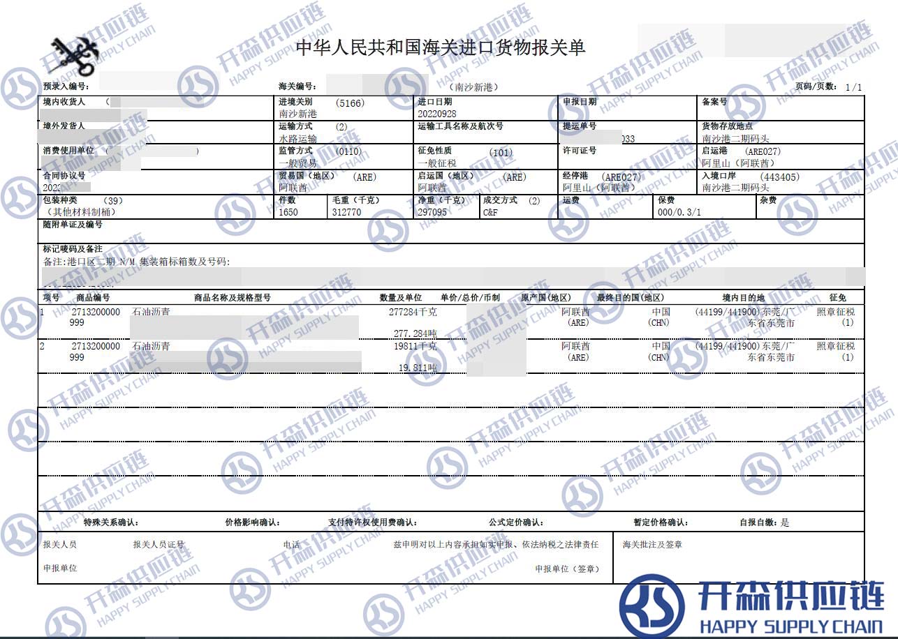一、石油瀝青進(jìn)口報(bào)關(guān)代理案例詳情