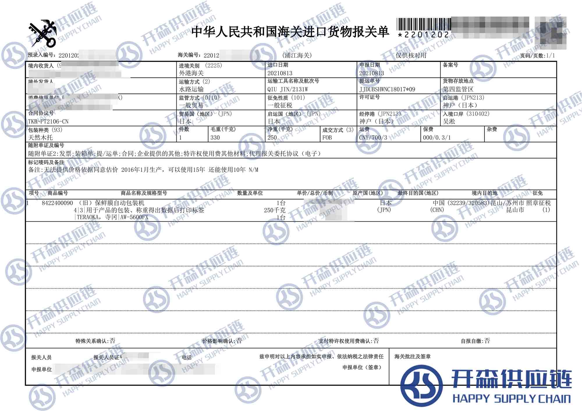 上海港日本舊保鮮膜自動包裝機進(jìn)口報關(guān)代理【進(jìn)口案例】