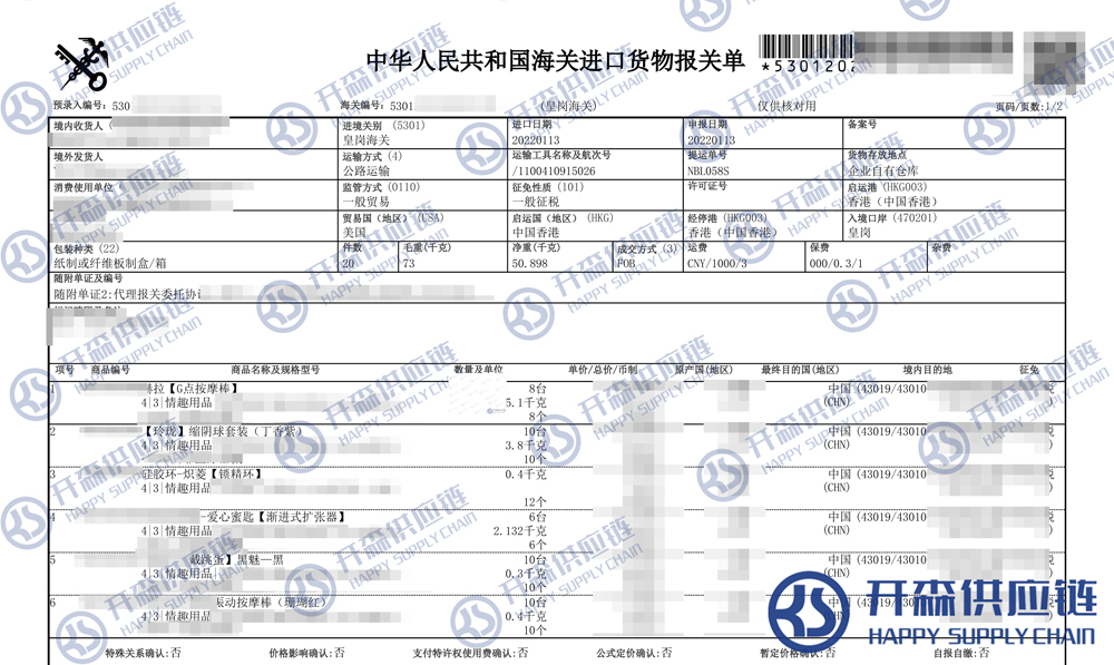 開森進口供應鏈擁有豐富的成人用品進口報關操作經驗及案例,十余年操作經驗及案例可供參考,可按需定制進口方案,幫助客戶解決進口難題,快速進口清關到港到貨。