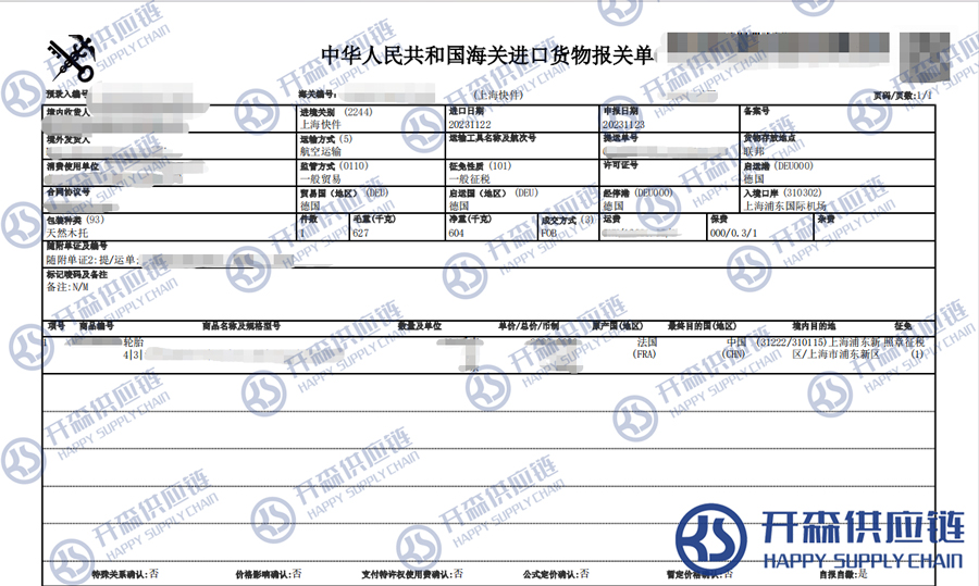 【導讀】您正在閱讀的是關于上海機場德國汽車輪胎進口報關代理服務【清關案例】的內容,本文由開森汽車配件進口報關代理小編整理編寫;