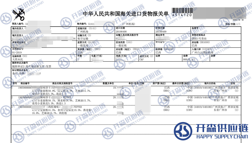 一、巴西餅干進(jìn)口報關(guān)代理案例詳情