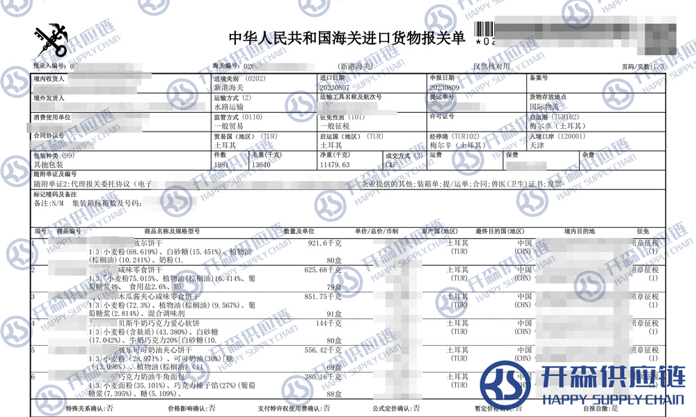 一、土耳其餅干進(jìn)口報(bào)關(guān)代理案例詳情