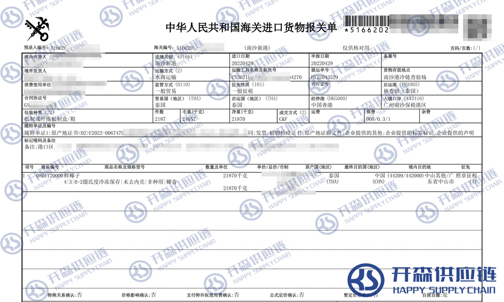 【導(dǎo)讀】您正在閱讀的是關(guān)于泰國(guó)鮮椰子進(jìn)口清關(guān)報(bào)關(guān)代理服務(wù)【經(jīng)典案例】的內(nèi)容,本文由開森水果進(jìn)口報(bào)關(guān)代理小編整理編寫;
